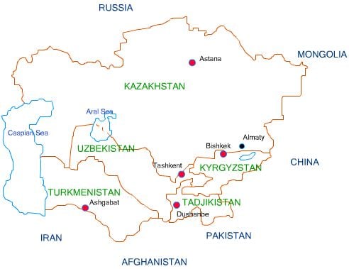 Kazakhstan, Kyrgyzstan, Uzbekistan, and Turkmenistan are Turkic-speaking countries. Tajikistan is a Persian-speaking country, culturally closer to Iran and Afghanistan.